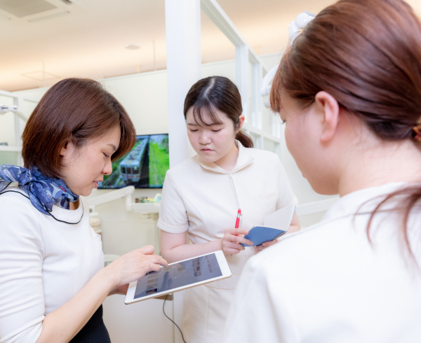 常に歯科についての知識を学ばれていて、セミナーで大切な内容は朝礼のときなどにスタッフ全員に情報共有をしてくださいます。